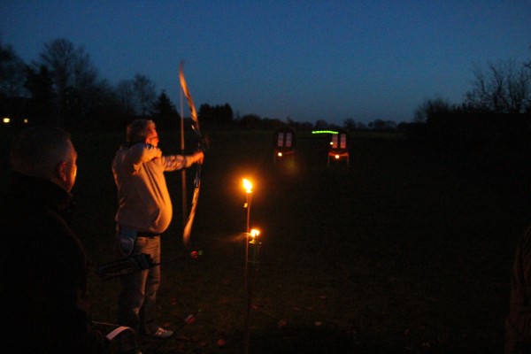 Die Stimmung war super und das Schießen im Fackellicht hat allen Spaß gemacht. Meik hat einige Pfeile mit Leuchtnocken versehen, das sind die leuchtend grünen Striche auf den Bildern.